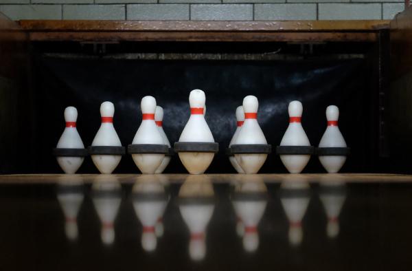 The rules of duckpin bowling are somewhat similar to ten-pin bowling. It is a ten frame game where the bowlers knock down the pins in the fewest rolls in each frame.
