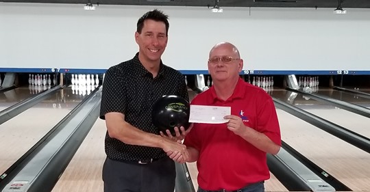 Tucson - - - We had a great start to the Winter/Spring 2020 Points Race Season for the King of the Hill Tournament at Tucson Bowl, 7020 E 21st Street. Event #1 of 6 brought in 25 entries and we paid out $860 from the prize fund, as well as additional payouts from the optional High Game and Brackets. Congratulations to John Cook, (pictured left) for winning the high scoring tournament, on the Kegel Chromium pattern. The next KotH Tournament at Tucson Bowl will be Sunday, February 9th, 2020. Thank you to Tournament Director Josh Quesnel for running the event. For additional information call Tucson Bowl at 520-747-1363.