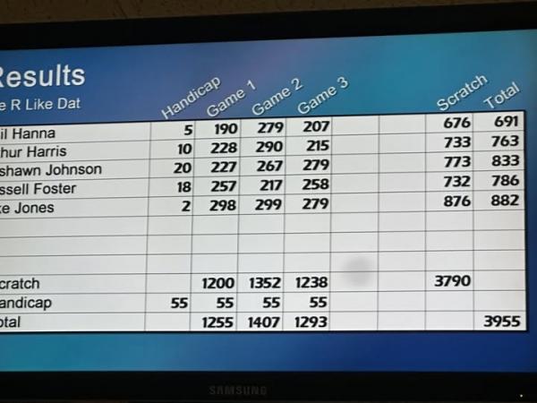 Congratulations goes out to the team of We R Like Dat. The team of: Phil Hanna, Arthur Harris, Keshawn Johnson, Russell Foster, and Mike Jones. Who bowl in the Tri-City Men's League on Thursday night at Bowlero Kyrene in Chandler. Possibly set a new house scoring record for a five-man team, and quite possibly a state scoring record as well. The scores were rolled on Thursday October 9.