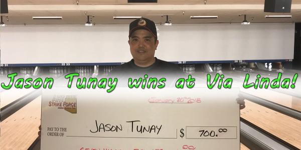 Our event this past weekend was at Brunswick Via Linda lanes and we had great turnout for our first Saturday event, with 91 total entries (61 qualifying and 29 economy parlay), 26 total cashers, a 1 in 3.5 cash ratio and paid out over $4,900.00 in main and side event prize fund. Players bowled on the PBA 47ft Scorpion pattern. Most of the players played in the middle of the lane or around the 2nd arrow at the furthest right. It didn't take the pattern long to break down and forced players further left.