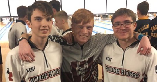 15-year-old Matthew Richards and 16-year-old Chris LeSueur are members of the Kent Rough Riders bowling team. The whole team was bowling well, but Matthew and Chris did something special during their games.