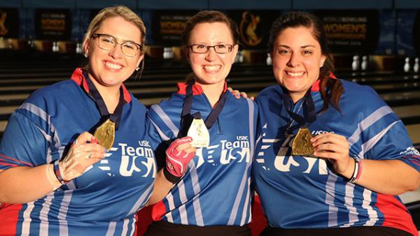 LAS VEGAS - There's no doubt that years of experience on bowling's biggest stages helped prepare Team USA's Liz Kuhlkin, Jordan Richard and Missy Parkin for the gold-medal rally they mounted Thursday night at 2019 World Bowling Women's Championships.